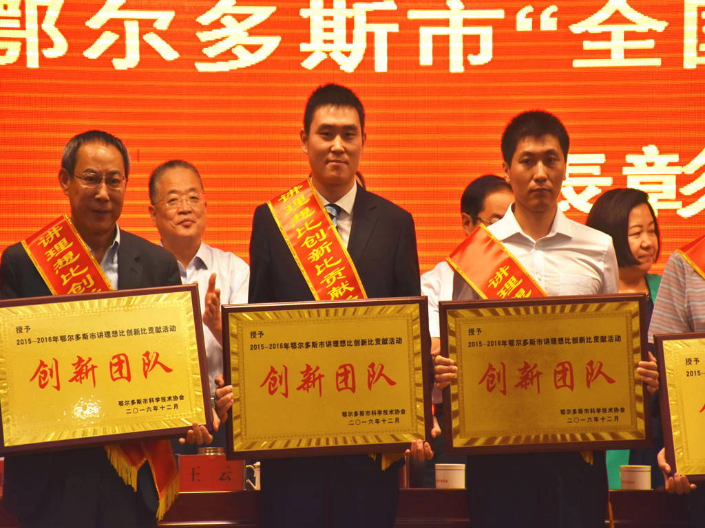 2017年5月(yue)26日(ri),在(zai)鄂爾多斯(si)市(shi)(shi)“全國(guo)科(ke)技工作者日(ri)”表彰(zhang)大會(hui)上,久科(ke)環保獲得了由鄂爾多斯(si)市(shi)(shi)科(ke)學技術協(xie)會(hui)授予的2015-2016“講理想比貢獻比創新(xin)”活動創新(xin)團隊獎。
