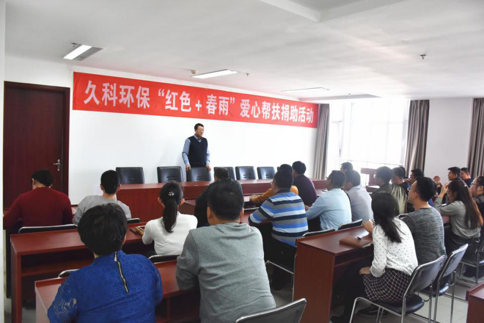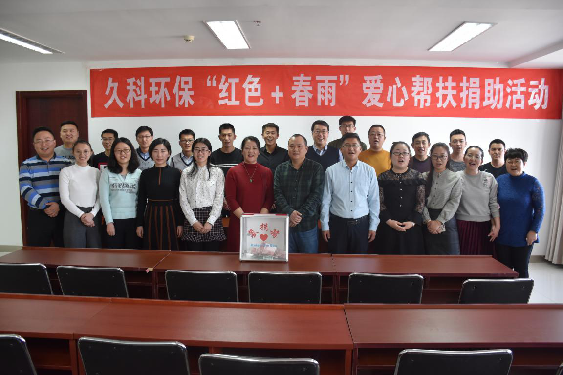 2018年2月8日,響應鄂爾多(duo)斯市(shi)東勝(sheng)區工商聯“積極參與社會公益(yi)事業(ye)和(he)光(guang)彩事業(ye)”的號召,久科環保舉行了“紅色+春雨”公益(yi)幫扶(fu)愛心(xin)捐助(zhu)活動。