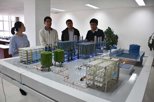 久科環保總經理助理兼團支部書記齊婧,向鄒科長和李教授匯報了我公司科技創新、專家院士工作站和久科節能環保產業園的建設情況。在聽取匯報并觀看和我公司“高含鹽工業廢水零排放分質鹽資源化循環利用核心技術”演示后,李教授說,久科環保選擇的研發方向很有針對性,是適應當前煤化工廢水排放難、處理難的現狀的,并充分肯定了久科環保的市場前景。鄒科長提到,久科環保起點高,目標明確,且擁有高素質的人才團隊,要充分利用高素質的人才隊伍,發揮久科環保的優勢技術,增強自己的競爭優勢,為鄂爾多斯市科技創新事業再添新光輝。